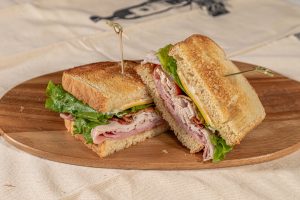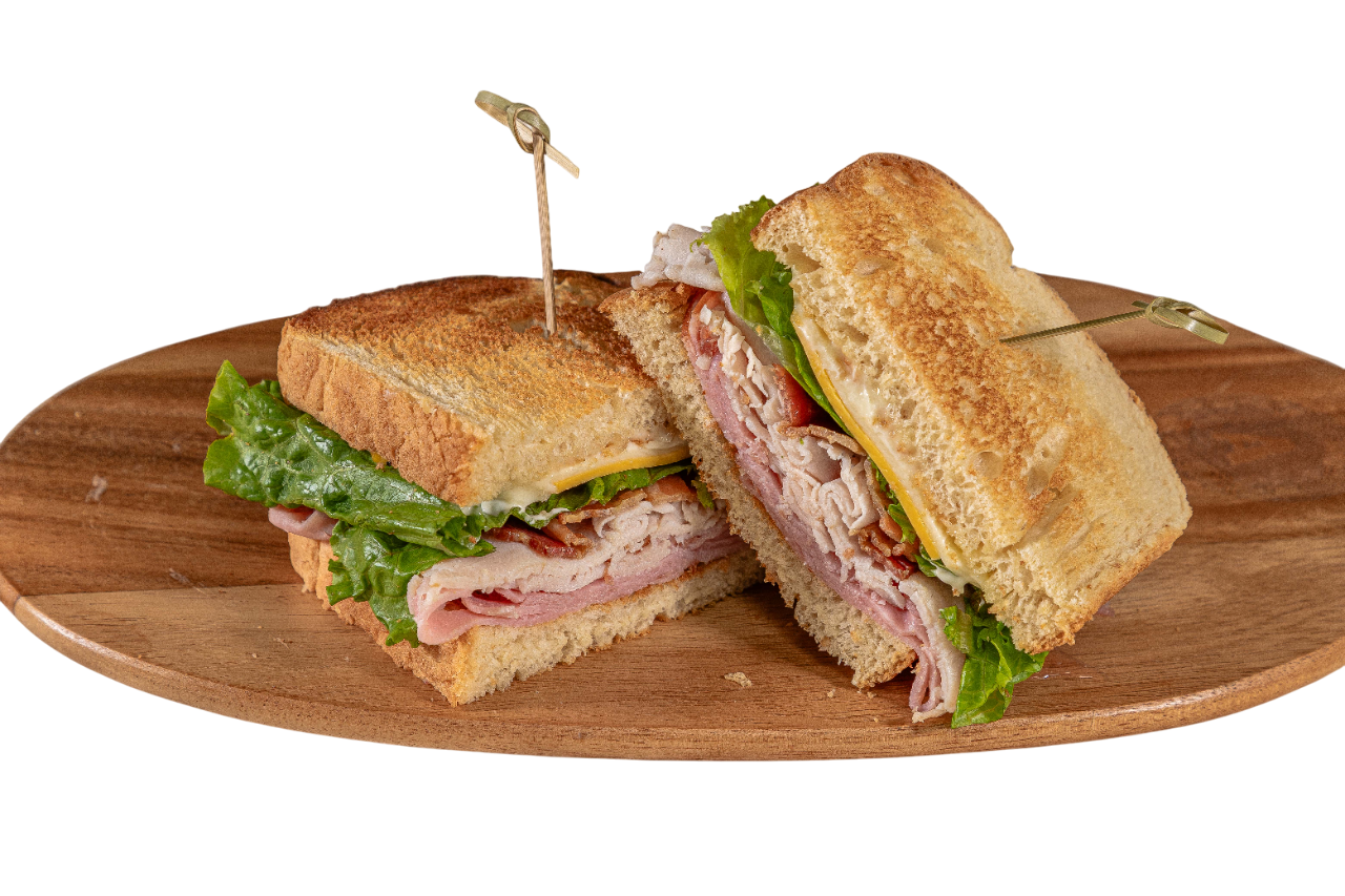 Turkey, Bavarian ham, bacon, American & Swiss cheese, lettuce, tomato, and mayo on toasted bread of your choice.